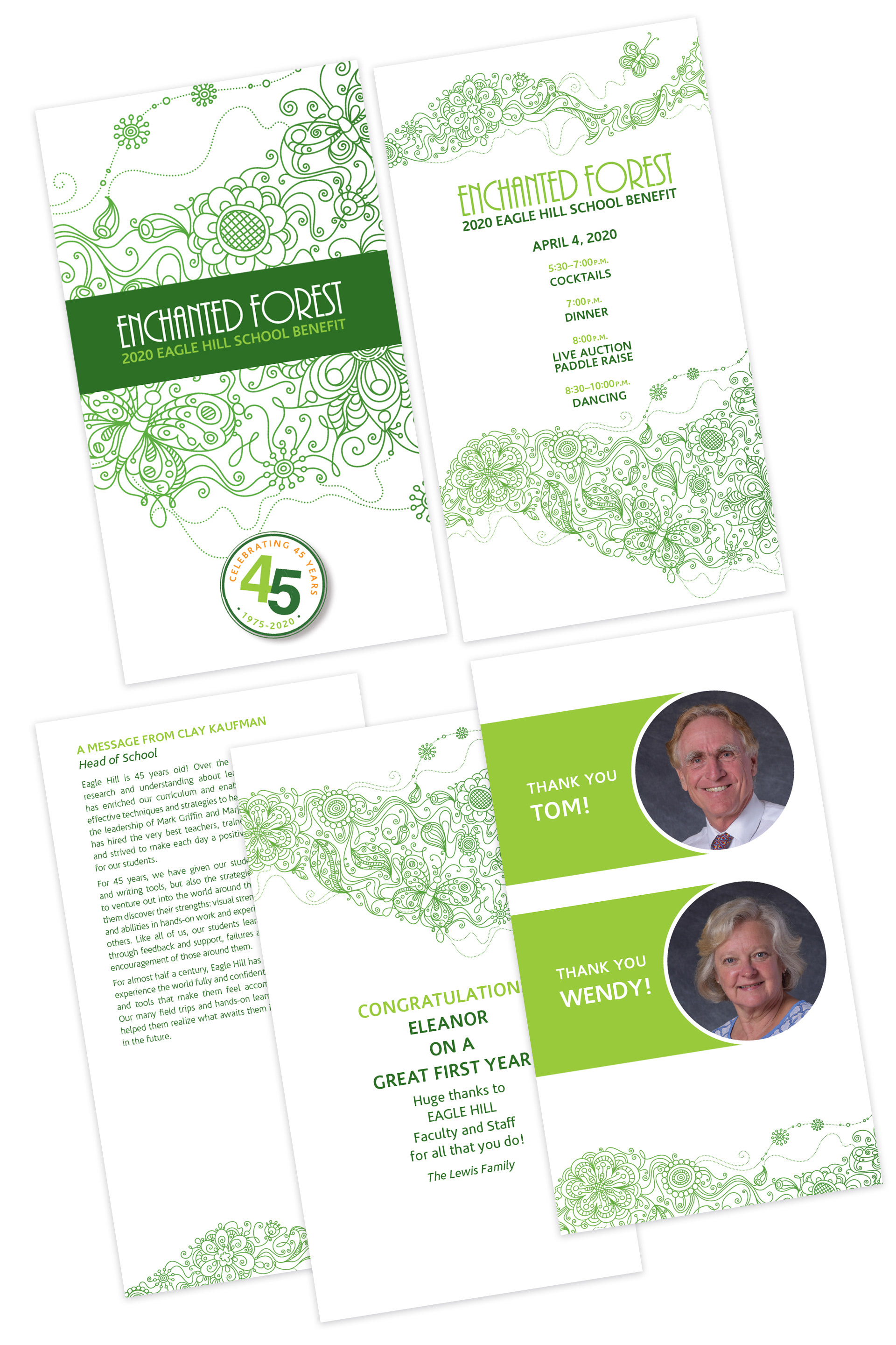 Created a whimsical brand style to celebrate the school’s mission and 45 years of excellence. The cohesive collection included event logotype, invitations, reply cards, envelopes, programs, and web graphics, all designed to promote the annual benefit and engage supporters.